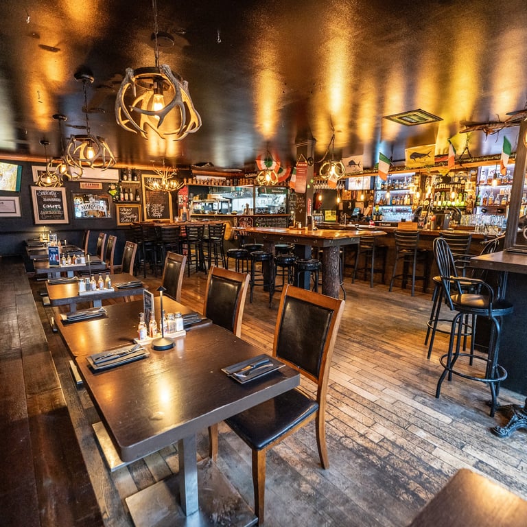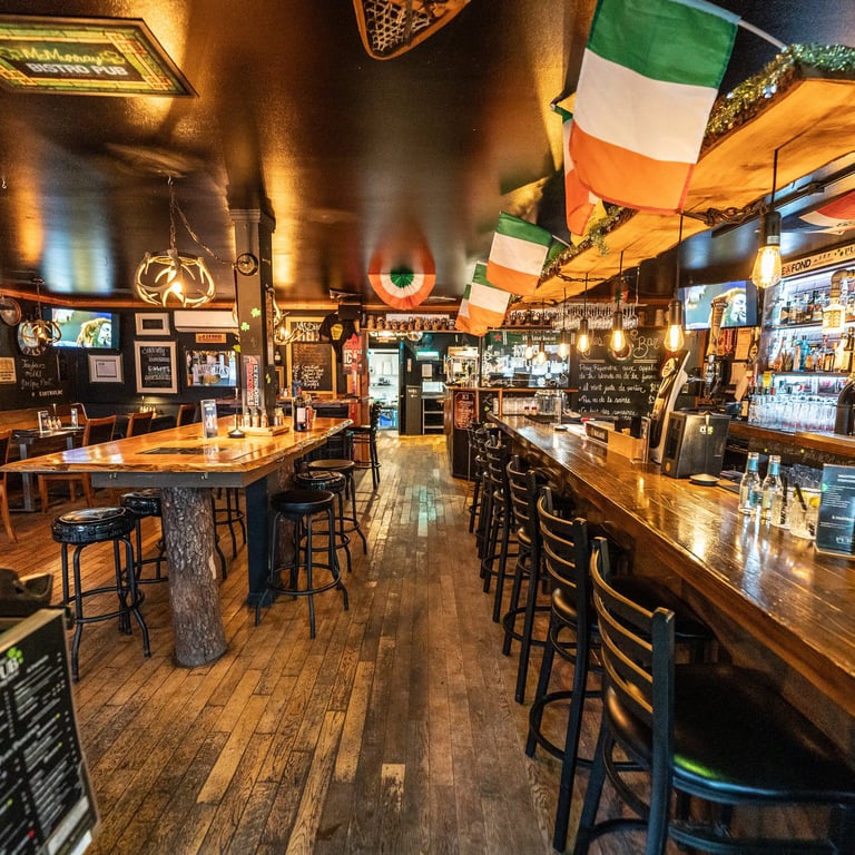 UN ENDROIT D'INFLUENCES IRLANDAISES DES PLUS SYMPATHIQUES OFFRANT DES REPAS DE STYLE BISTRO-PUB.